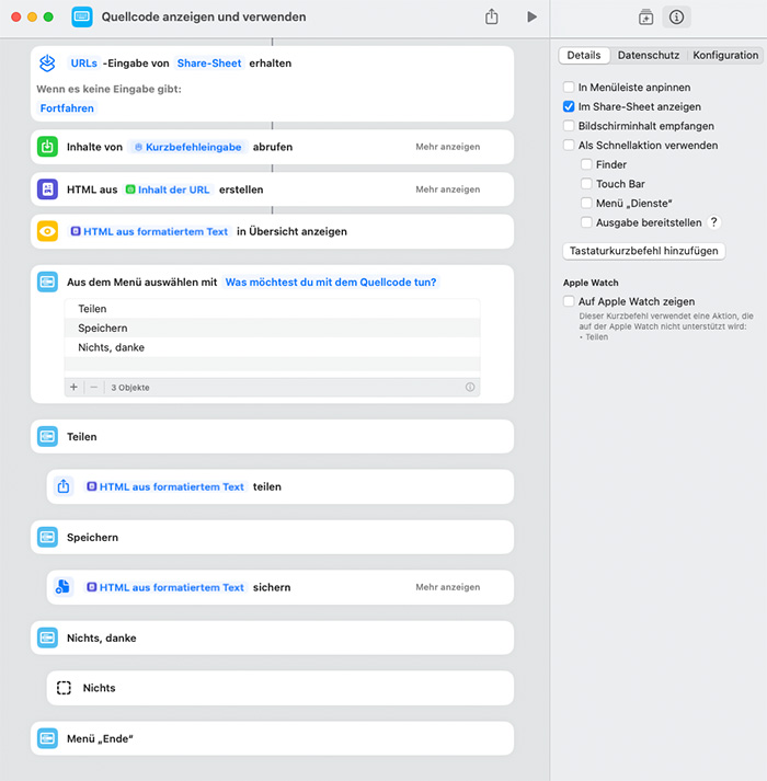 Dieser Kurzbefehl ist recht einfach gehalten und die einzelnen Schritte sollten selbsterklärend sein: